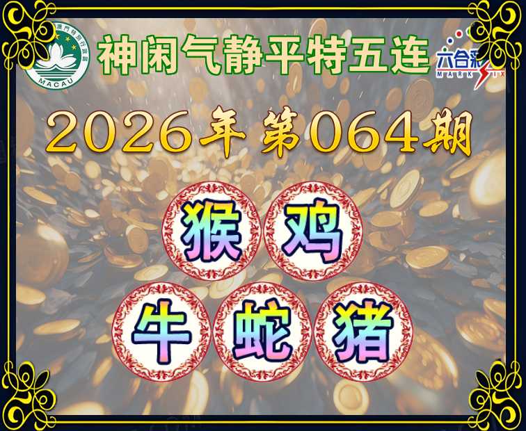 064期:《神闲气静》 🥫平特五连🥫【猴鸡牛蛇猪】开:猴23,鸡34,牛18,蛇02,猪08